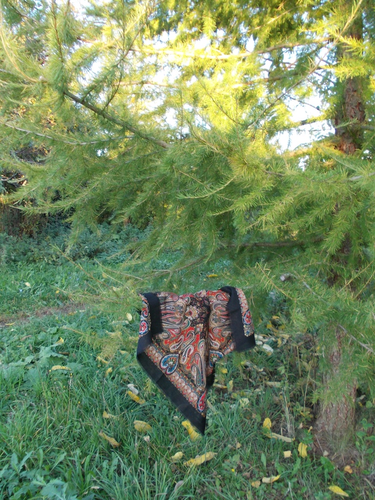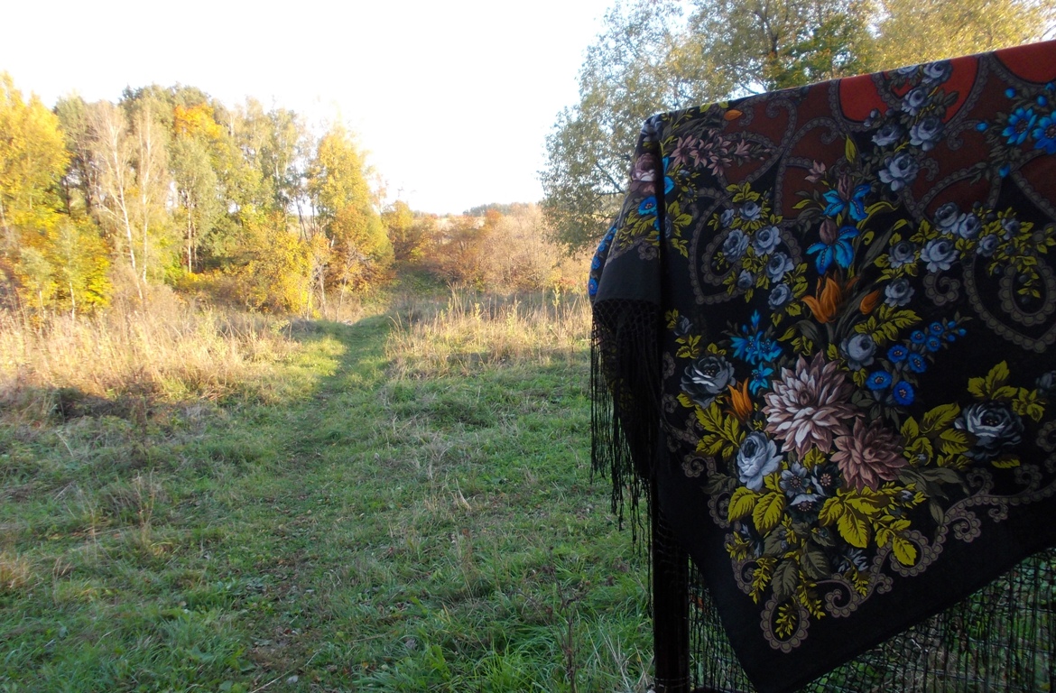 Последние фотографии из осеннего леса. Сегодня со мной был платок "Ларец самоцветный" в осенней палитре. Покупался специально для подобных прогулок.