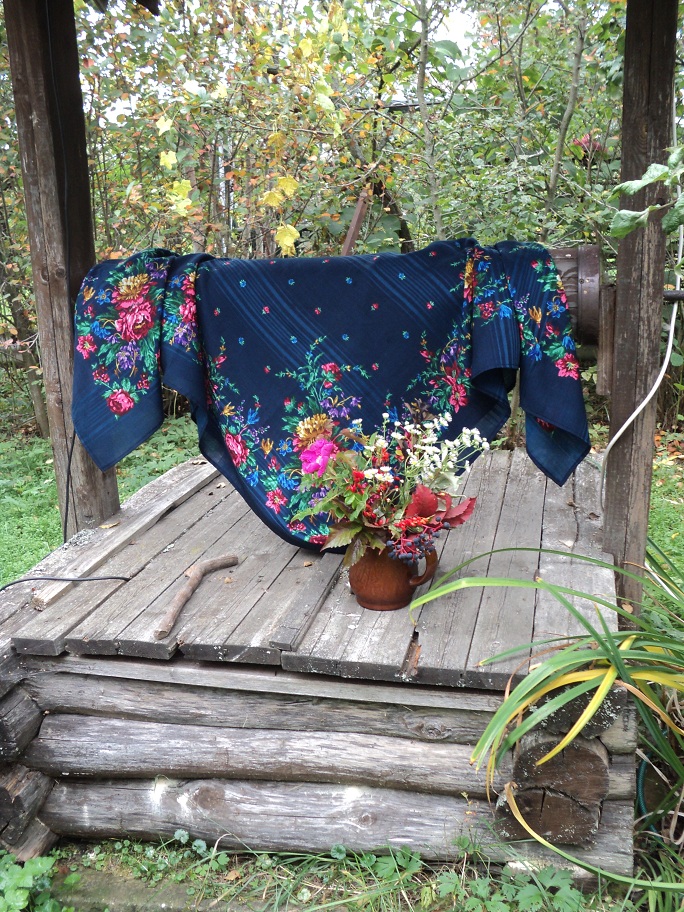 <Marfa>, как хороша Аза, очень, на мой вкус, осенняя шаль именно в этом колорите. Только нужно, чтобы на неё светило солнышко, для раскрытия глубины и теплоты оттенков (мой глаз выхватывает там, в первую очередь, всё тепленькое почему-то). А на лесенке вокруг Радоницы это случайно не хмель раскинулся шишками?