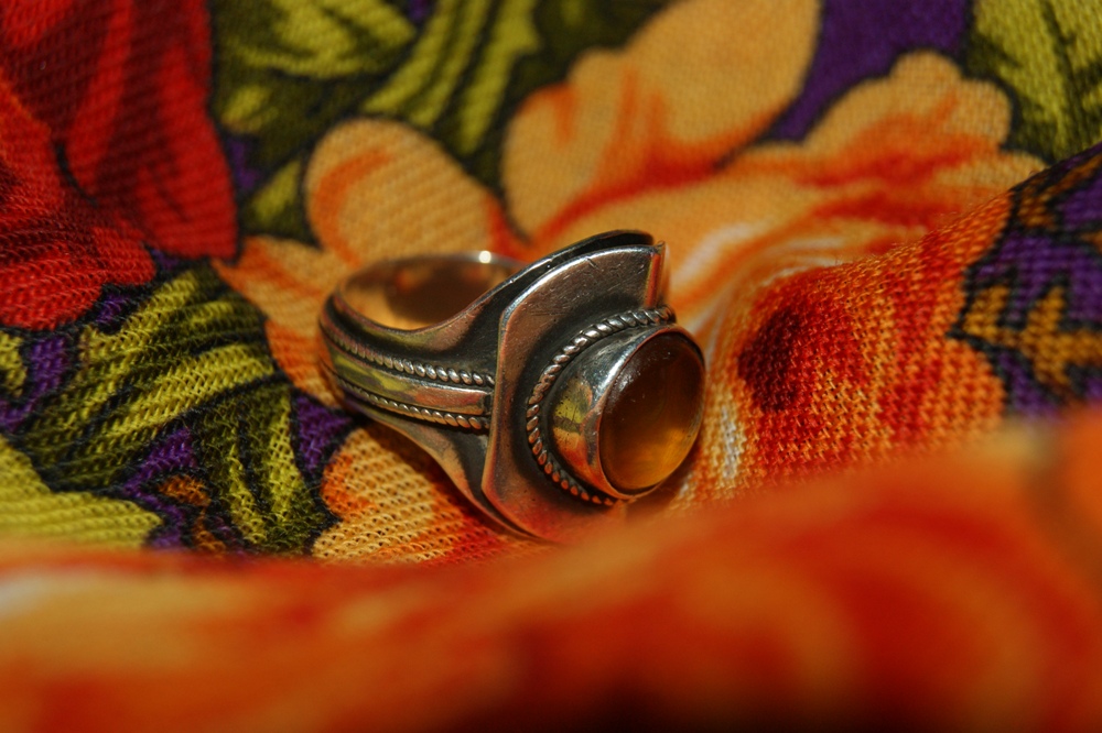 вчера мое вдохновение фотографическое распространилось на несколько платочков, и появился материал наследить в некоторых темках, в том числе в этой. Хотя каменьями самоцветными я не увлекаюсь, но парочка любимых украшений у меня есть. Первое - давняя любовь, серебряное колечко с янтарем, которое мама покупала в 60-х годах в Харькове. Это колечко носила мама, потом она отдала его моей двоюродной сестре, а потом оно перешло ко мне. вот такая своего рода семейная реликвия. Я его очень люблю