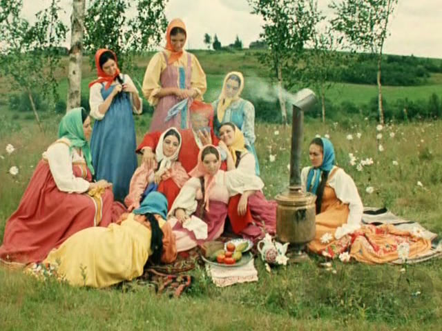 Ой, а девушка в светло-зеленой шали с ромашками и спущенной с плеч вылитая Koroleva Olga!