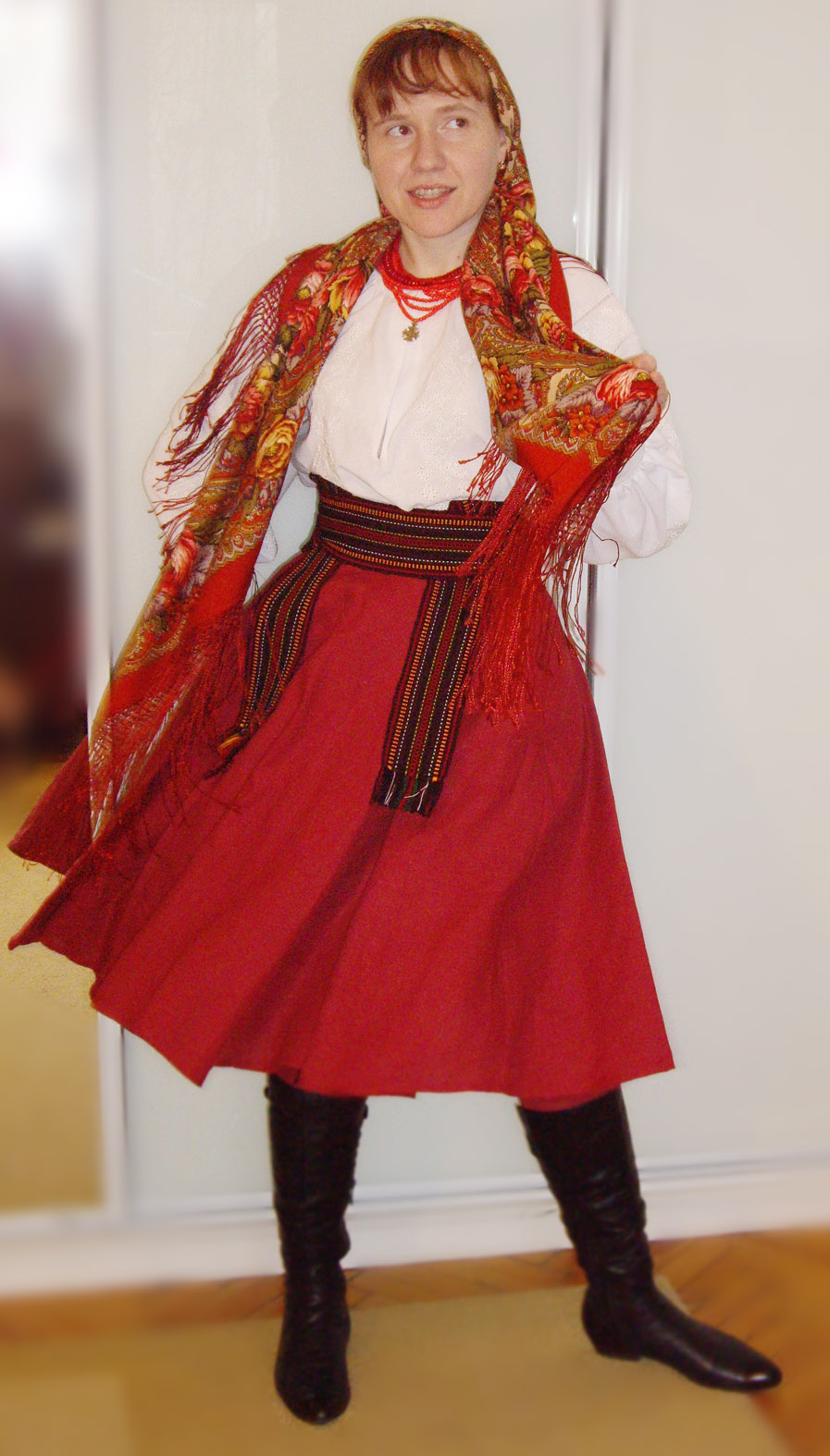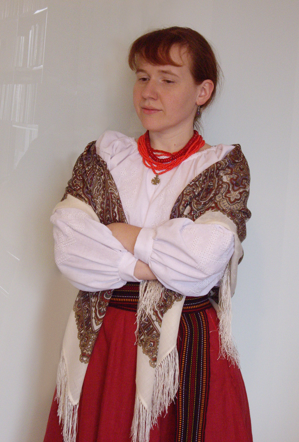 Значит, исправляемся. Недавно опять фотографировала сестру, делюсь последними экспериментами с народным костюмом. Красные платки выглядят очень убедительно