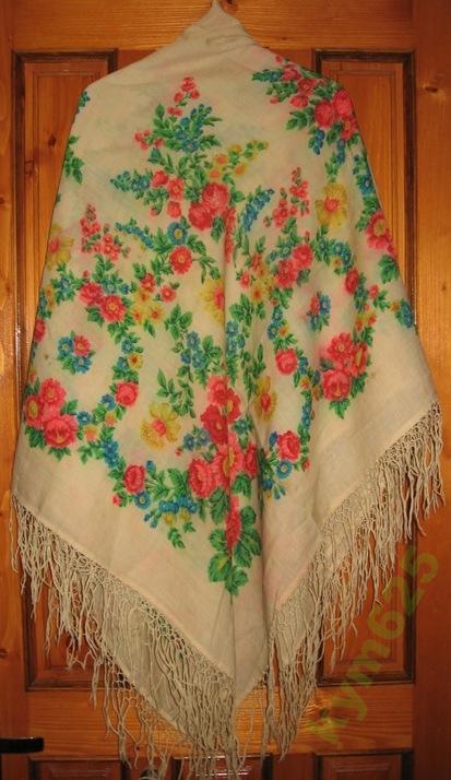 Ещё одна шаль 152х144, шерстяная кремовая: