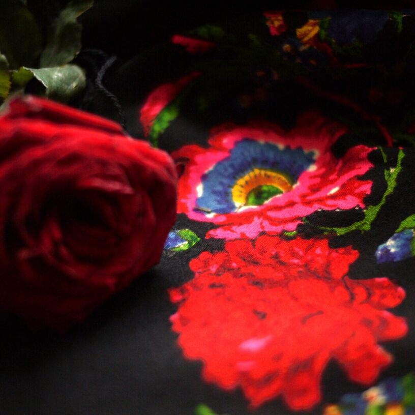 Конечно богатства эти нарисованные, как очаг на холсте папы Карло. Но черные недра этой необычной шали и впрямь богаты. Вглядевшись, можно найти и крошечные изумруды на золотых фестончатых ножках и круглые капли сапфиров и выглядывающие из тугой зелени рубины маленьких бутонов ...