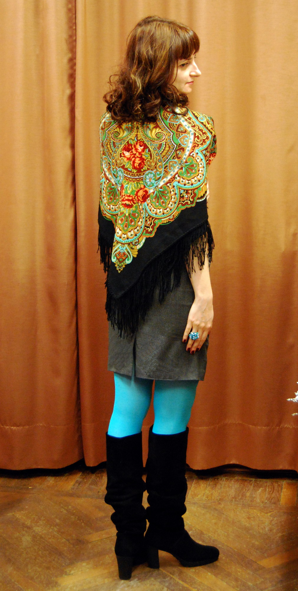 Много в этой теме говорилось о платке "Черные глаза" .И так мне его захотелось! И вот мне на новый год платок под елку дед мороз принес.Чернопольный, цветы на нем такие объемные! :: Единственно хотелось бы ,чтоб бахрома была шелковая.Ношу исключительно поверх шубы ,наматывая углом вперед,а концами назад и снова концы вперед выпускаю. Иногда просто один конец сзади болтается , а другой вперед выпускаю. Иногда ношу с черной сумкой,а иногда с сумкой в тон розам. Чувствую себя при этом как минимум барыней! 8-) :lol: