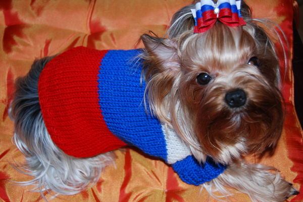 Мелкие звери мои имеют разные интересы, одна собирается гулять в гламурном комбинезоне с мехом, вторая в патриотичном прикиде на собрание партии, а может, ну, их, лучше подремать?