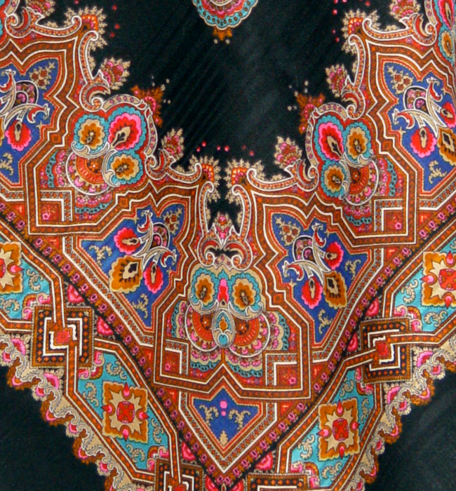 Из распродажи Восточный орнамент, рисунок: 1004-18. Красивый платок, нарядный, очень богатая кайма. А на сайте ничего этого не видно.