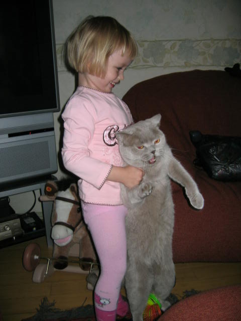 Бывают, чем дитенок меньше, тем больше он приближается к коту, в смысле по росту. С нашим котом уже сложно няньчится, но пытается, таскает за собой, а кот терпит, вернее снисходительно сносит, пламенно любит, вылизывает и охраняет, чтоб в ванной не утонулаBranchette писал(а):А бывают и такие пропорции.