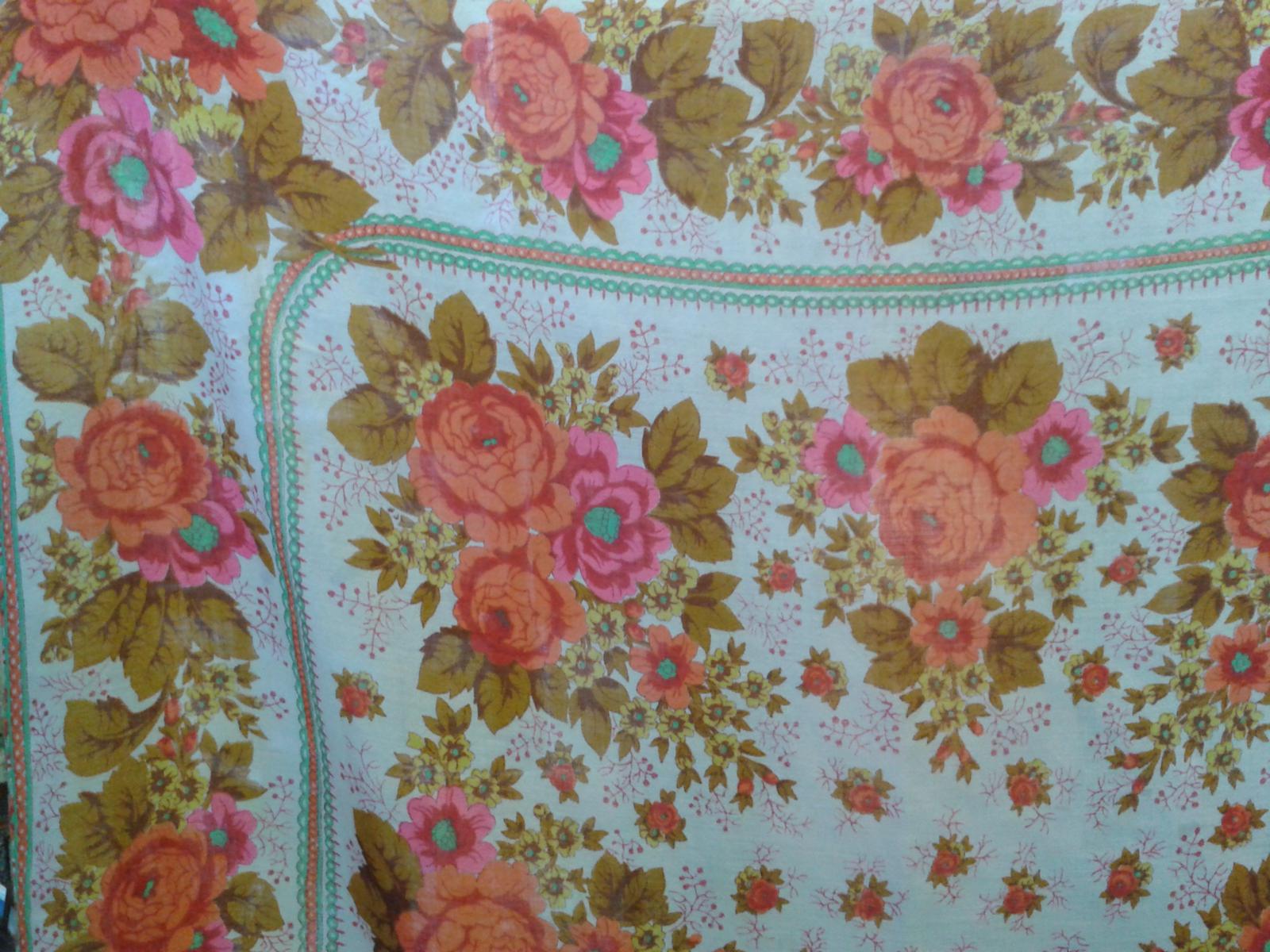 Алла, в жизни цвет платка не совсем такой, как Вы видите. Хозяйка платок носит, поэтому ткань от времени немного истончилась и слегка, как-бы помягче сказать, потеряла белизну. Но яркие оранжевые розы с бирюзовыми серединками светятся изнутри - очень красиво и жизнерадостно. Хозяйка говорила, что как-то испанцы просили продать им платок. Но он не новый, увы, не продаётся. Кстати, в салоне продавались современные ПП платочки, в том числе и моя ФЕЯ СИРЕНИ, и Настино РУССКОЕ ЗОЛОТО.
