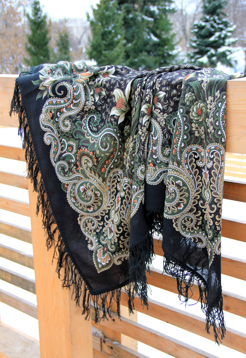 932-9 Цветочное ожерелье, восст. Дадонова Ирина, 146х146, шерсть с просновками, шёлковая бахрома