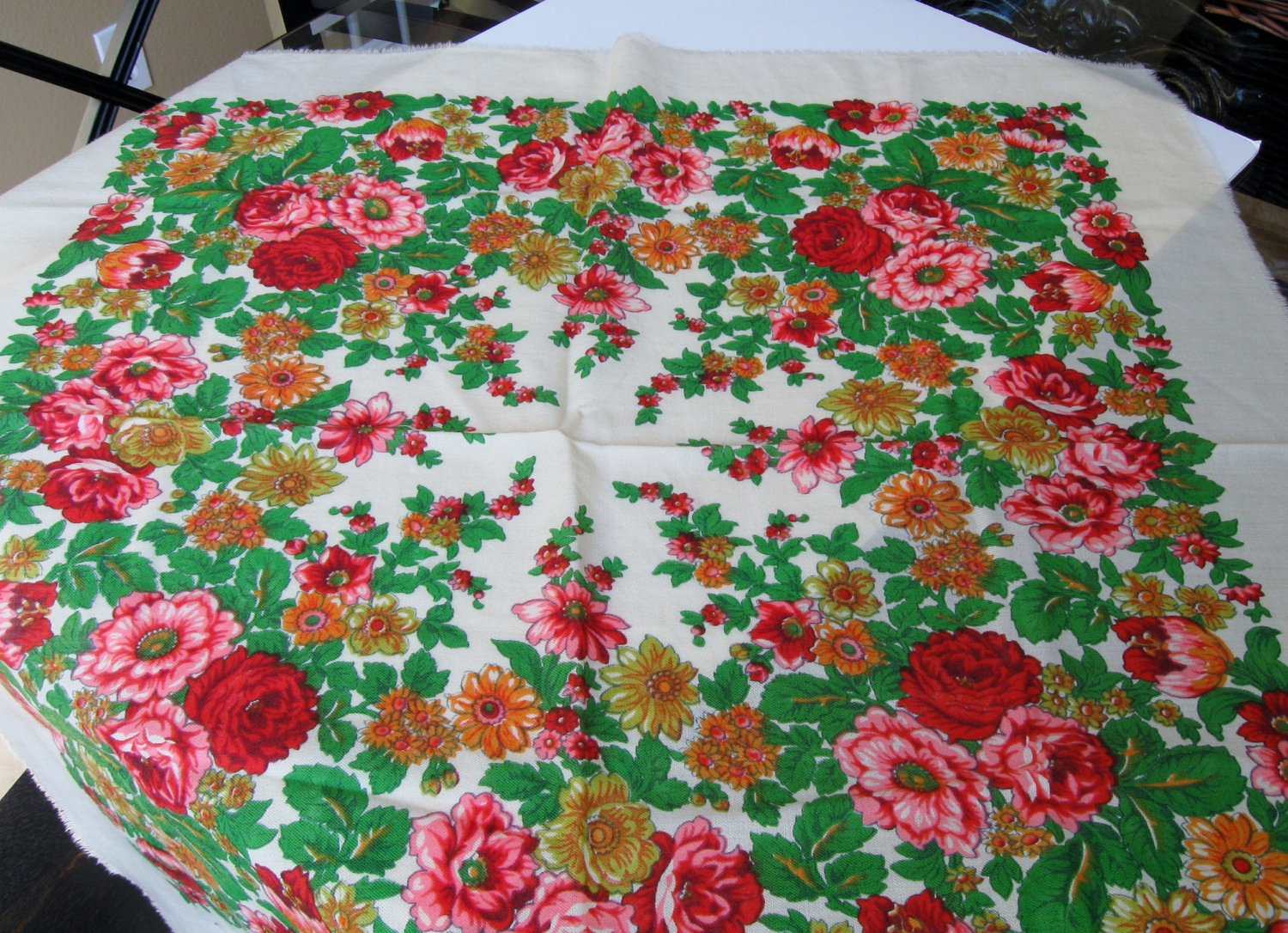 Beautiful vintage traditional Russian/Eastern European print folk scarf (shawls)