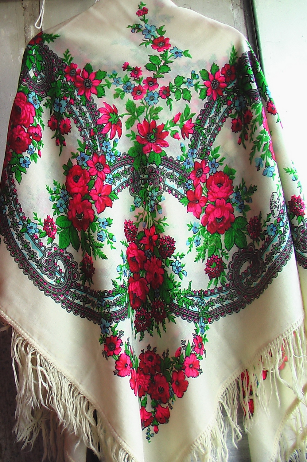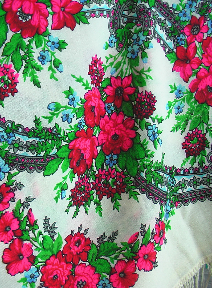Жаворонок, дело даже не в подделках. Хотя на данном фото шаль выглядит белее, чем в жизни. Мой платок из архангельской глубинки,несомненно старинный, с традиционной плетеной шерстяной бахромой. Смущает простота рисунка - у павловопосадских платков в 50-70 гг., да и в 80-е, на больших шалях преобладает пышность цветочного рисунка. Скромный разреженный орнамент встречается на небольших платочках. А это шаль около 150х150 см, шерсть. Далее: рисунок цветов не совсем павловопосадский - мне вообще астильбы и гелениумы померещились. Ну не рисовали такие цветы на ППМ, по-моему. Колорит цветочков тоже смущает. Или ве-таки бывали и такие шали у ППМ?