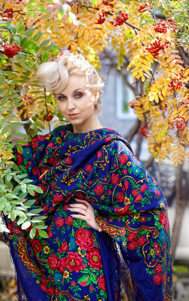 Да, он, такого колорита ни разу не видела. Очень красиво смотрится густой зеленый на белых волосах, захотелось Любавушку достать, но сейчас у нас солнца нет, в таких платках ходить нельзя, к весне достану.