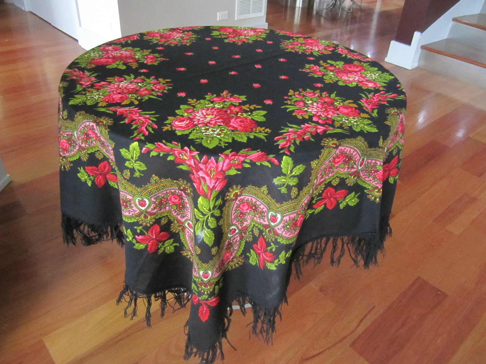 И совершенно дивный платок 125х125. Есть в нашей базе как неопознанный. С цветами хлопка. Был подарен подруге в конце 70х годов теперь уже прошлого века.