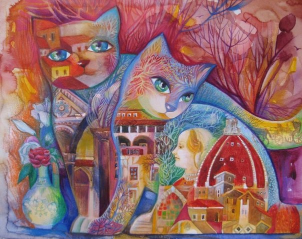 Встретилось сегодня на просторах Интернета. Автор рисунков серии "Кошки" - новосибирский художник Борис Касьянов. Много кошек можно посмотреть здесь http://kasyanovart.academ.org/russian/cats1.html