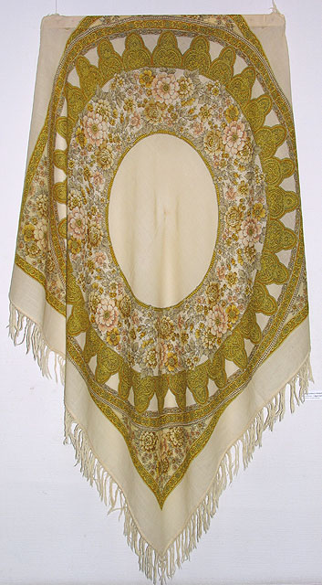 Все шали в экспозиции рукописные. Меня сперва немного удивило: почему нет печатных? Тоже интересно ведь! А потом сообразила, что в этом просторном зале их бы некуда уже было повесить: каждая шаль - 150х150.