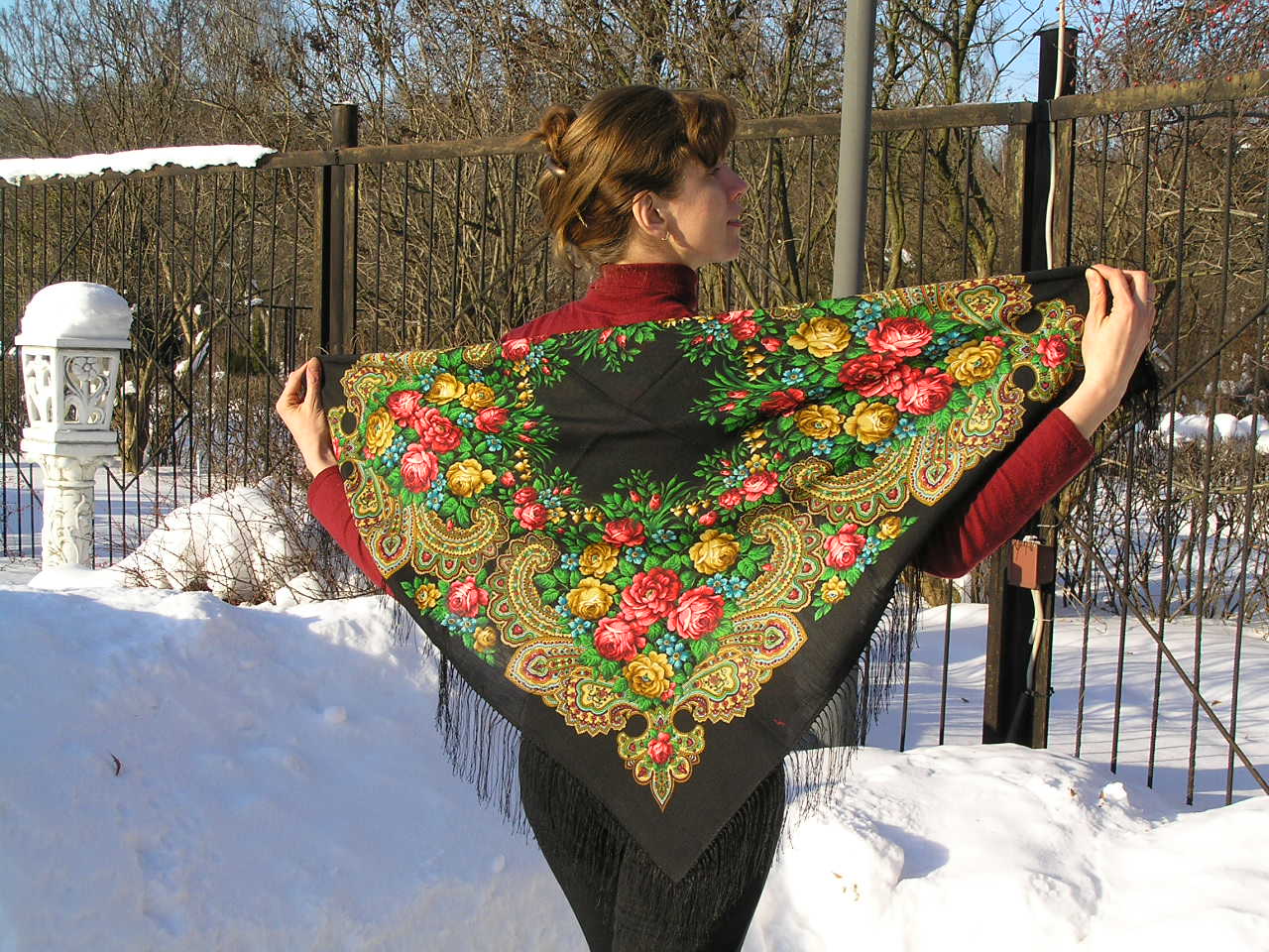 Ещё для себя сделала вывод, что для высокорослых шалеманок всё-таки лучше платки размером от 125 см. :"