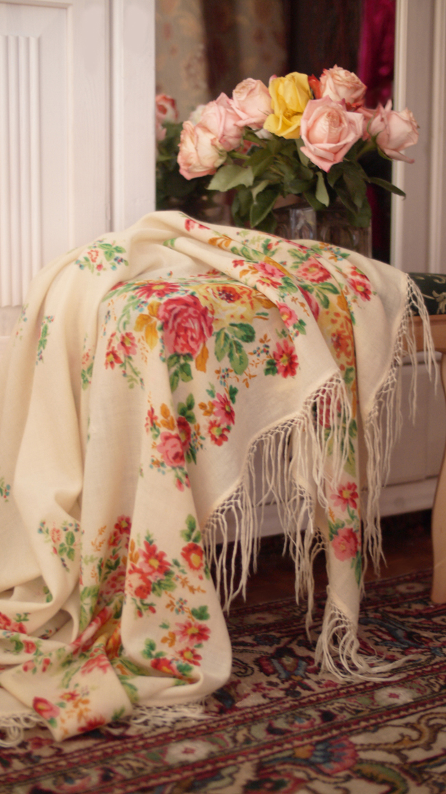 Незнаю что за набивка, как вообще можно "набить" ТАК?! Не представляю... Знаю только, что платок довоенный, павловопосадский.... Да, сама млею от его красоты! И шерсть на нем особая какая-то. Особо нежная.