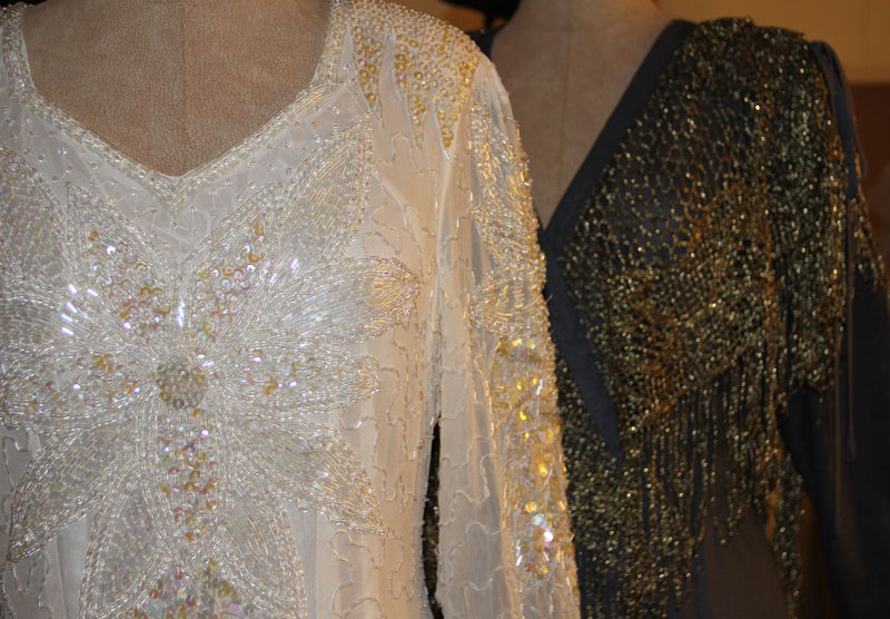 На выставке будут и эти два платья Валентины Толкуновой. Я сфотографировала концертное платье с вязаной шалью.