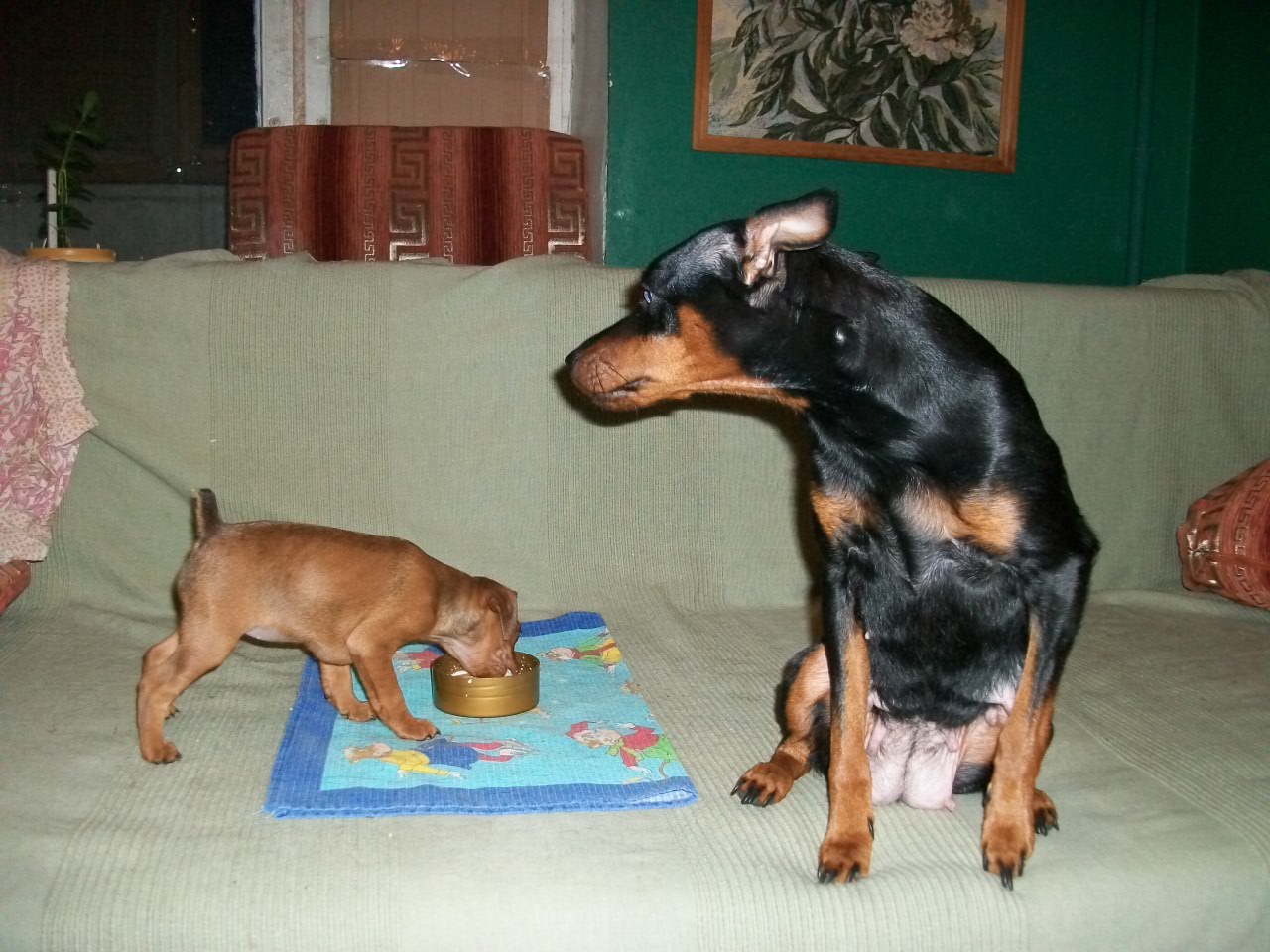 А у нас щеночки подросли, кормлю их теперь по одному по очереди.