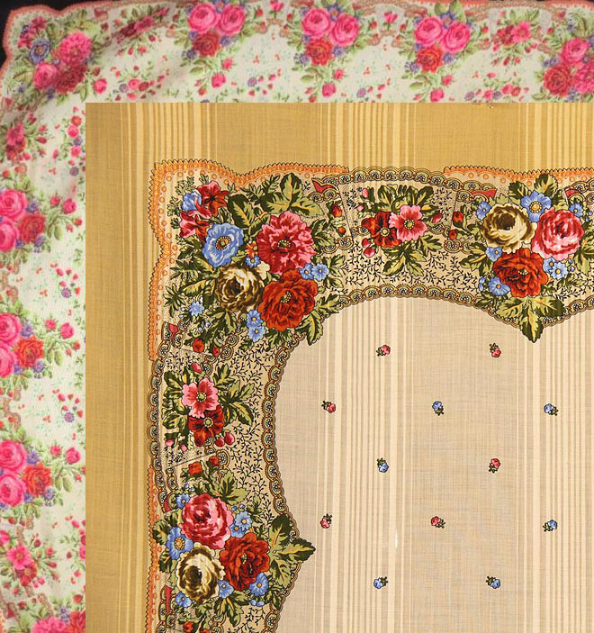 А вот второй платок? Ручная печать? Оригинальный старинный рисунок? Интересно >< ...