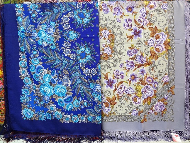 Мой фотоаппарат (по меткому замечанию Клюквы) опять поработал колористом....особенно он старается с синим цветом - наяву платок такой же контрастный, просто синий цвет чуть темнее ( но сочный...) - в оттенках голубых цветов - примесь цвета морской волны, и морской волны+голубого. В колорите -14 (синем) - 3 оттенка синего (основного фона) и 7-8 оттенков сине-голубых в цветах (а может и больше