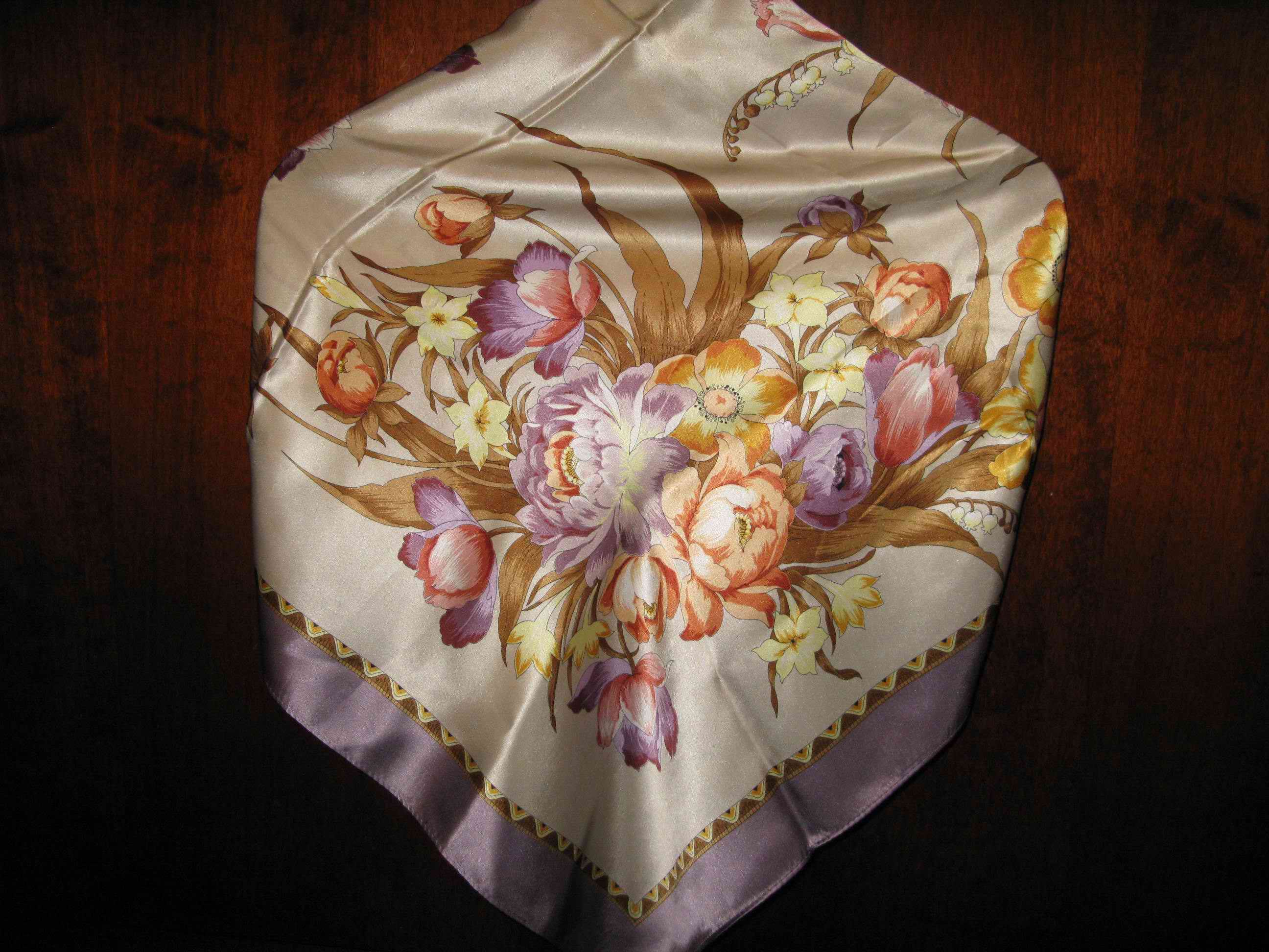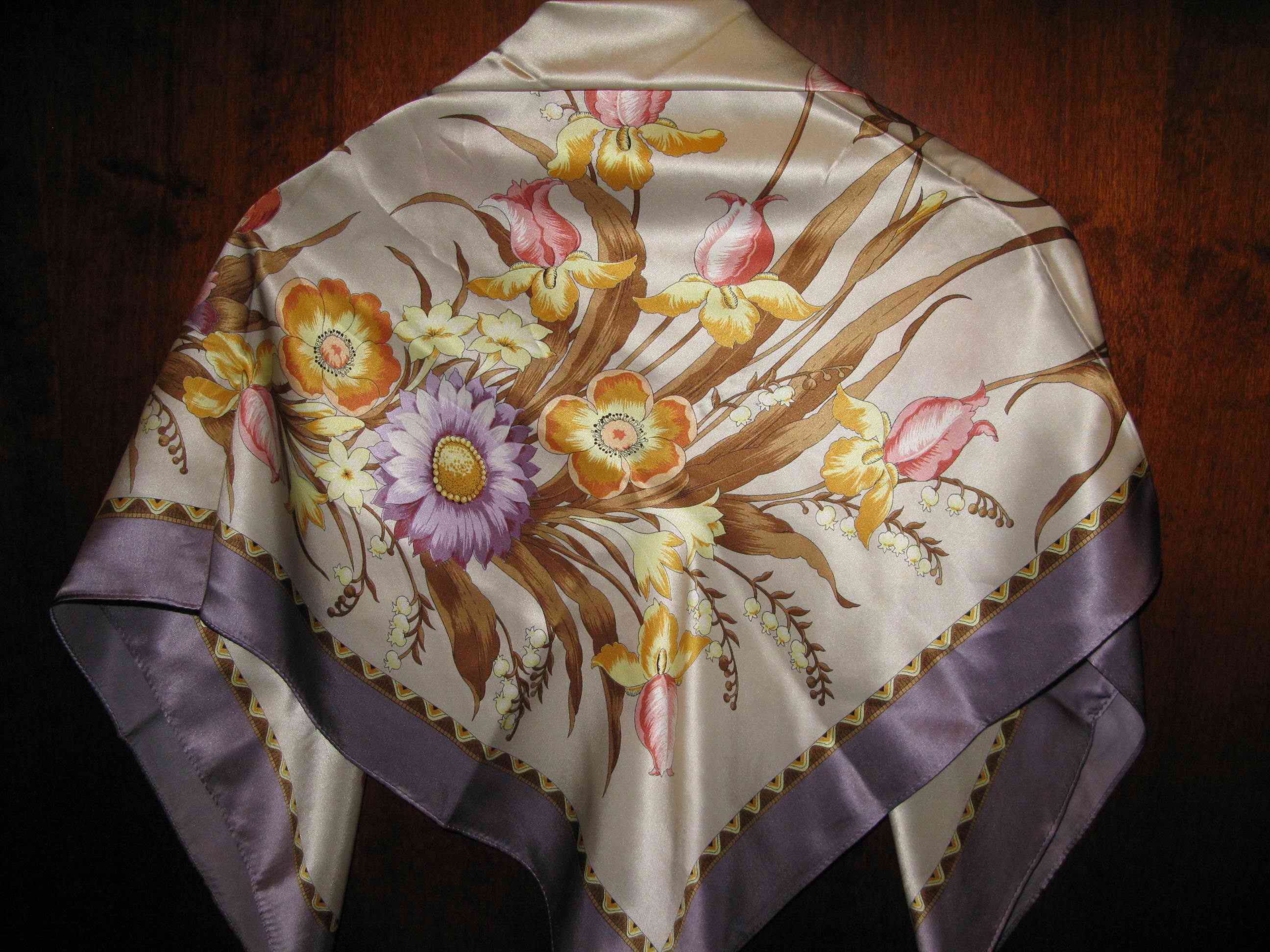 Всем привет! Получила сегодня три платочка. Леопардовый вечер - 18 и Поэзию Востока - 7, а еще платочек 89х89 Сады Ширазы бордовый. Леопардовый вечер для мамы, она любит звериные расцветки, а я нет. А Поэзия для меня. Как мне понравился этот платок!! Я в него влюбилась еще по фото, и он меня не подвел :<>: Очень красивый, очень нежный. Единственно, что меня сначала смутило сильно - это размер платка. Я ж привыкла к маленьким шарфикам и платочкам. Какое-то время присматривалась и меряла :)