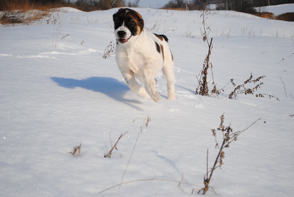Кайзер, растет, но сразу видно, что еще дитя собачье, глазки умненькие, на моське конопушечки, славный такой, и как же ему хорошо там, на воле!