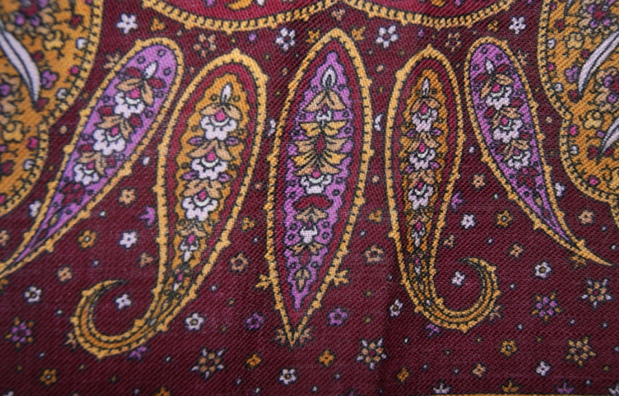 На этой фотографии Ники видно как в рисунок на кайме (от середины фото вправо и немного вверх) вместо цветочка вписано что-то типа клейма овальной формы со словами *ПАВЛОВО*ПОСАД*. Может, и вензель художницы куда-нибудь врисован?
