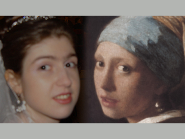 Недавно пролистывала свои фотографии, нашла вот такой забавный свадебный коллаж. Слева невеста, справа картина Вермеера "Девушка с жемчужной сережкой". Мне показалось, что в девушках есть что-то общее.