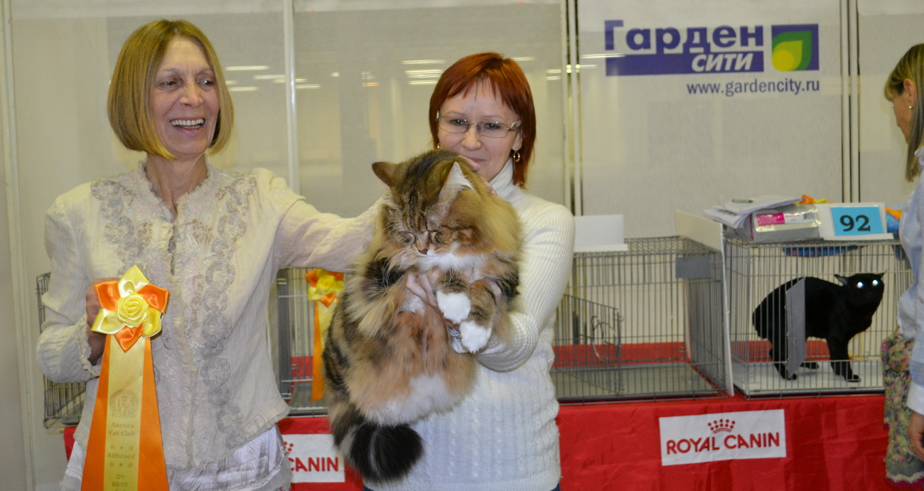 Говорила по-английски и без переводчика. О Гусаре сказала, что у них это очень редкая порода и что Гусар - прекрасный представитель этой породы, который покорил её сердце