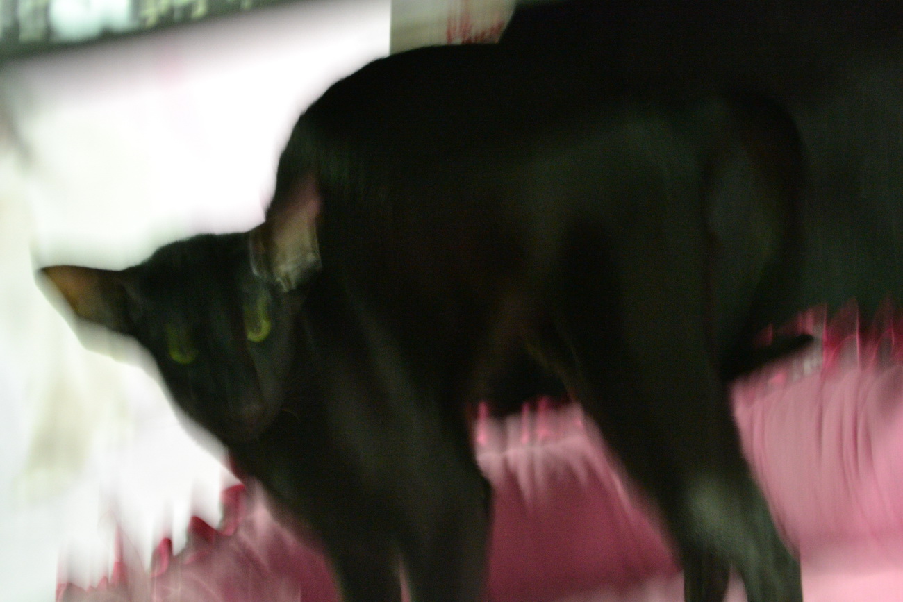 Про миужчину: высокий худой иностранец с изящным котом, который НИКОГДА не слезал с его шеи. Так они везде и ходили вдвоём