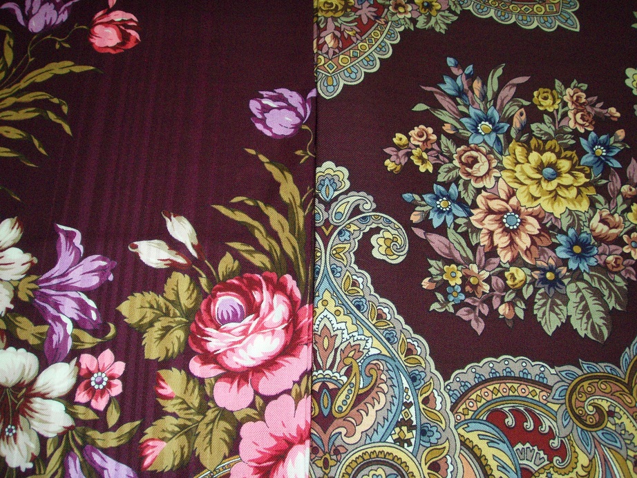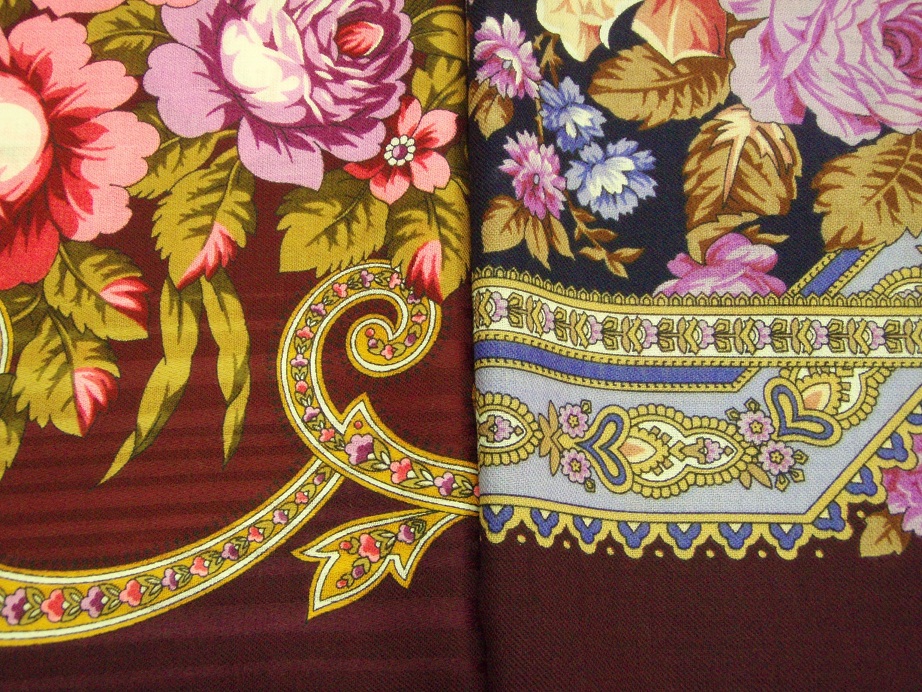 Более детально с "Павловскими розами". Как нам с Мариной показалось есть ощутимое "родство" основного цвета фона платка "Павловские розы" и "Осеннее танго" (здесь все фото со вспышкой - они придают желтизну листьям и "теплоту" розам. На самом деле - оттенок роз - холодный).