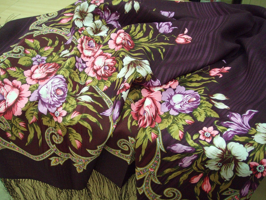 И, в заключение, платок со вспышкой и без. Мой личный вывод - мне платок понравился. Примеряла на себя - тоже красиво. Но я с просновками, увы, не ношу. А свои слова про очень крупные цветы - беру назад