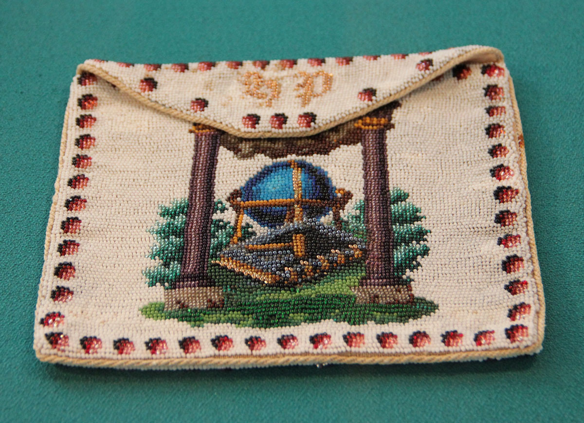 В Егорьевском музее выставка. Практически повторяет недавнюю в Останкине. А в главных залах вдруг обнаружила бисерный бумажник с масонской символикой. С подобной символикой бумажником я недавно имела "дело" - жаль, что поздно увидела, так как было масса вопросов о символах.