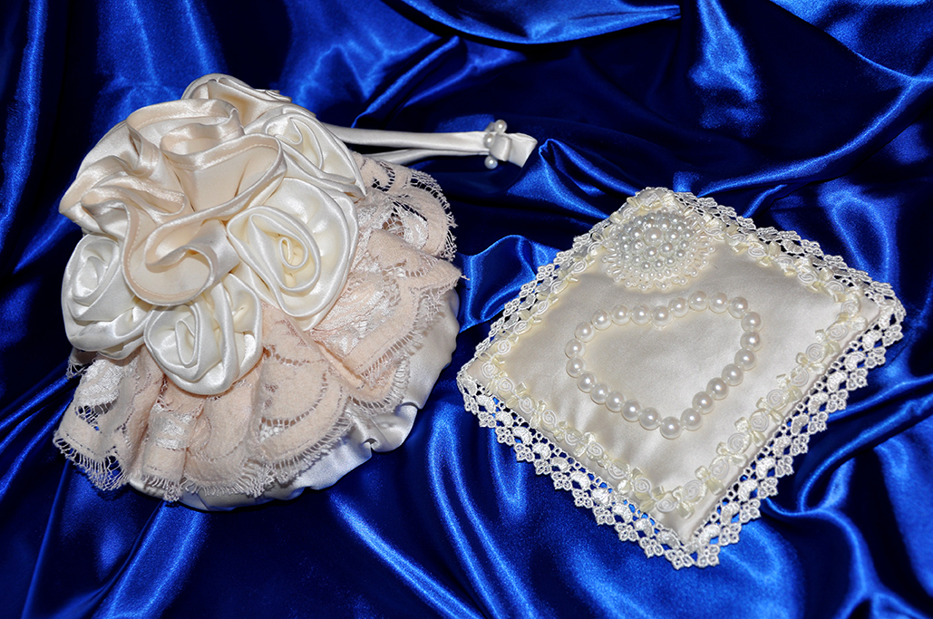 И аксессуары (сумочка и подушечка для колец):