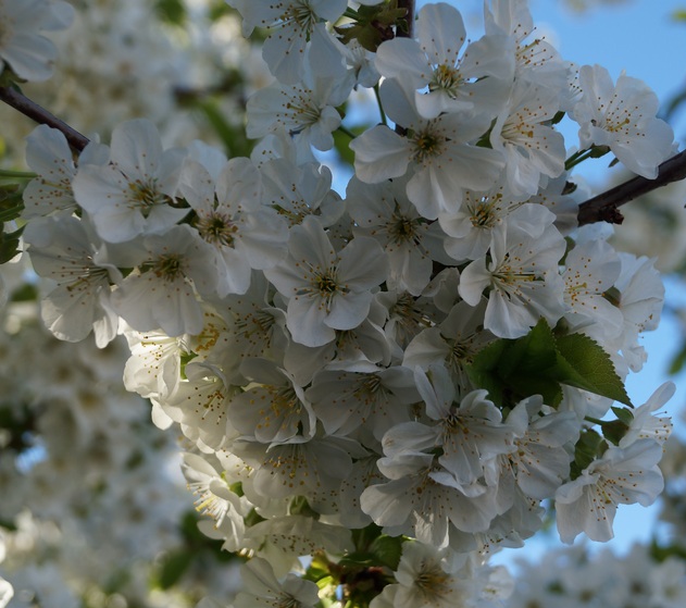 Наступило лето. Вишня, которая была белая в мае, теперь выглядит вот так.