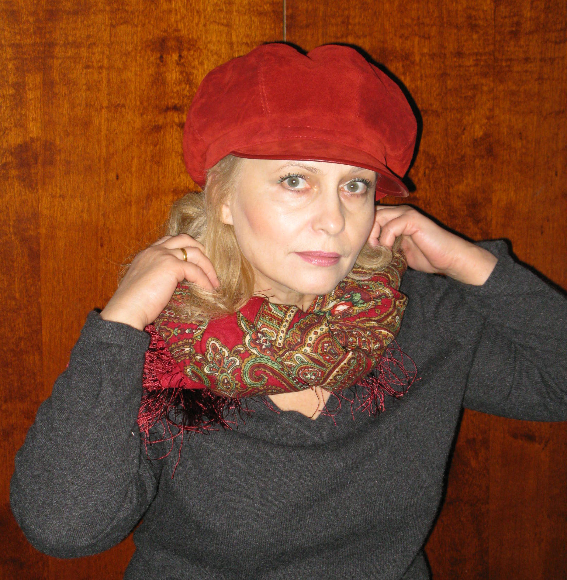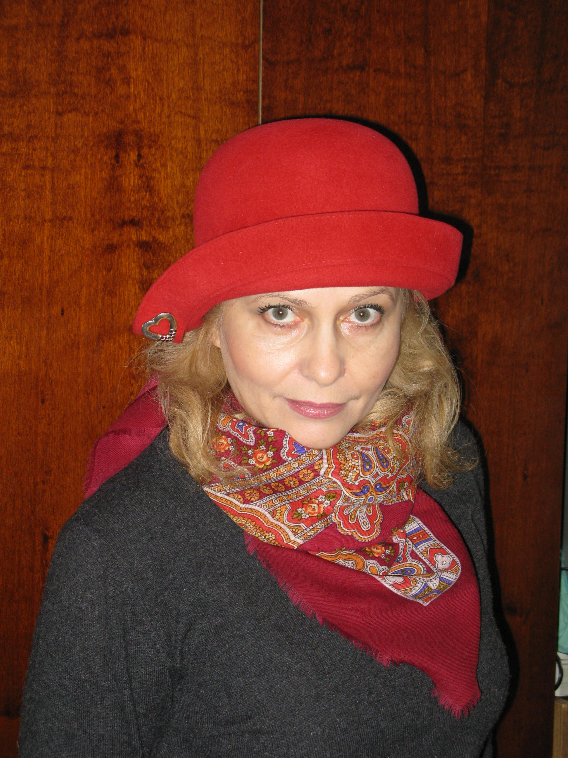 К сожалению, не многие женщины могут похвастаться, тем что им идут шляпки. Но это не про Вас. Вам просто потрясающе идут шляпки: такой лукаво-кокетливый взгляд из под тульи и уже не просто женщина - прекрасная дама. Очень понравились красная и зеленая с коричневой полосой шляпки (впрочем, остальные тоже, но эти взгляд выхватил особо), и, конечно, замечательно подобраны платочки.