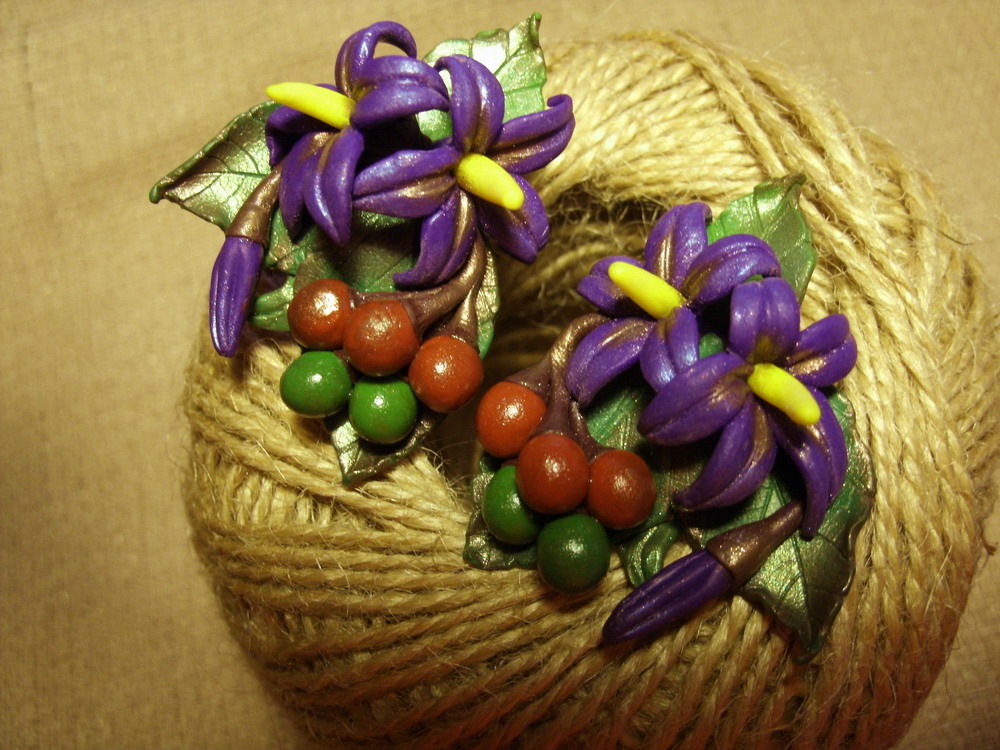 Серьги и колье: сладко-горький паслен. Для колье использованы бусины из аметиста и хризолита.