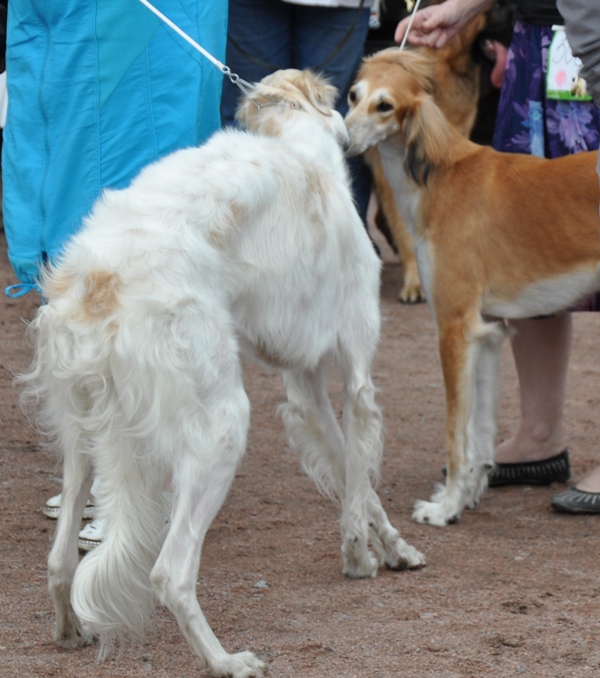 Леда знакомится с конкурентом - арабской борзой салюки
