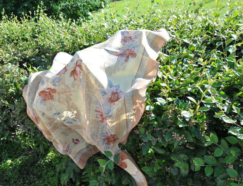 Света купила симпатичный распродажный шелковый платочек. Так как в базе его мало, решили запечатлеть. Очень красивый золотистый цвет.