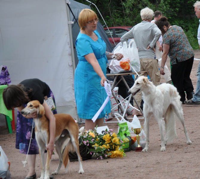 Леда знакомится с конкурентом - арабской борзой салюки