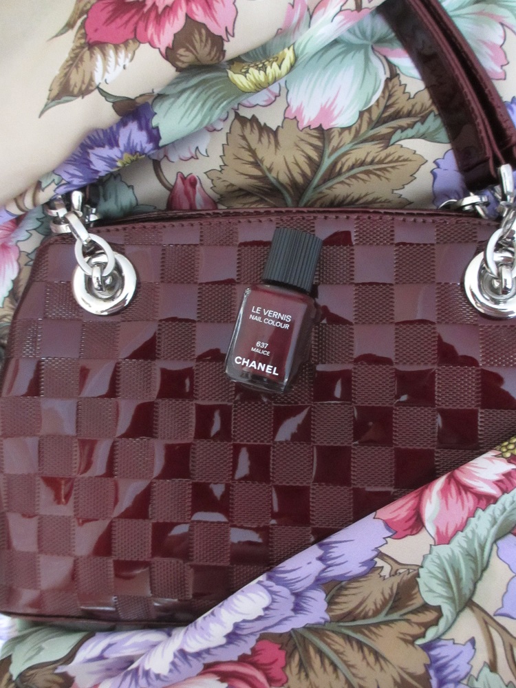 Платков с оттенком "глубокого-винно-бордового" цвета у меня практически нет, но "Берег грёз" 1389-6- вроде бы тоже подходит к Chanel "Malice" - 637(в тени и на свету).