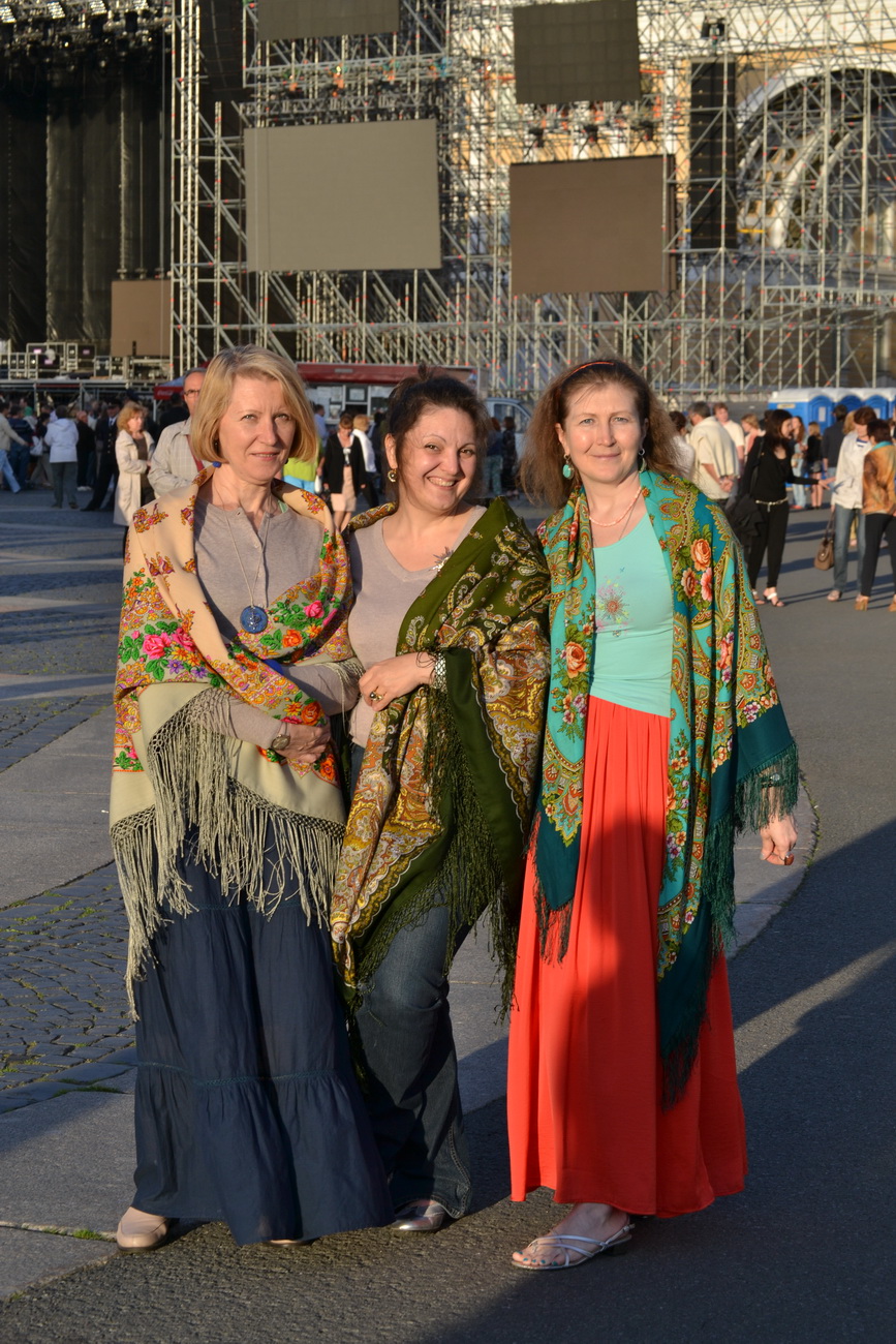 Погода была замечательная. Не жарко, сначала с серым небом, но без дождя, а после 21.30 выглянуло солнце. Ах,эти белые ночи. Мы не могли не пофотографироваться. Да ещё и под музыку!