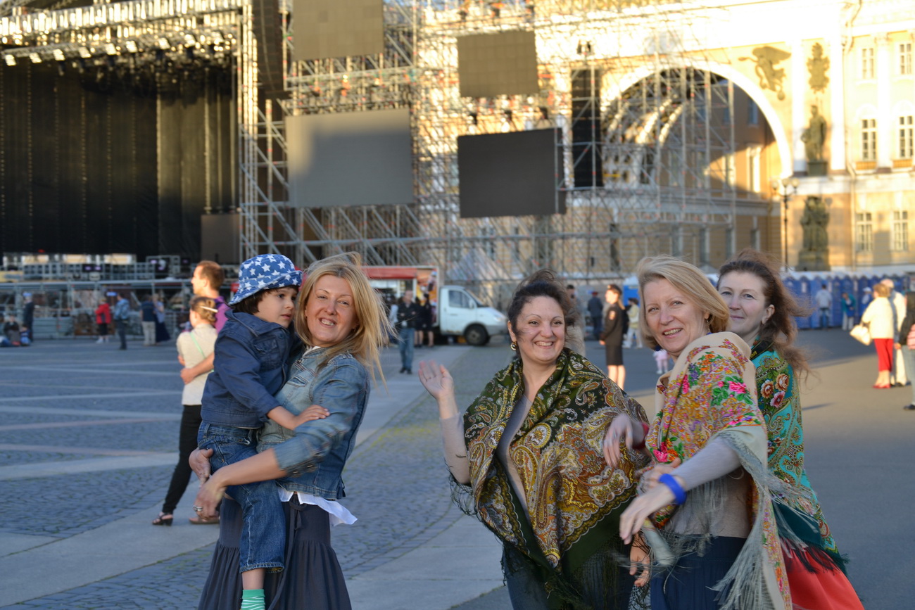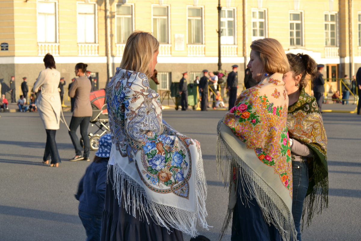 Я не знаю, специально Люся или нет пришла на Дворцовую площадь в этом колорите Венского Вальса, но теперь Венский Вальс для меня - Дворцовый платок (Зимнедворцовый!). 100 %-ое попадание!