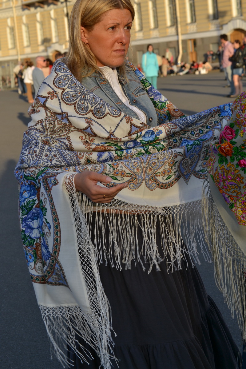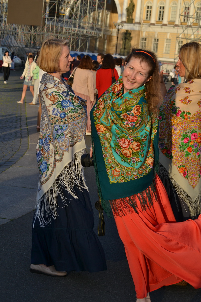Я не знаю, специально Люся или нет пришла на Дворцовую площадь в этом колорите Венского Вальса, но теперь Венский Вальс для меня - Дворцовый платок (Зимнедворцовый!). 100 %-ое попадание!