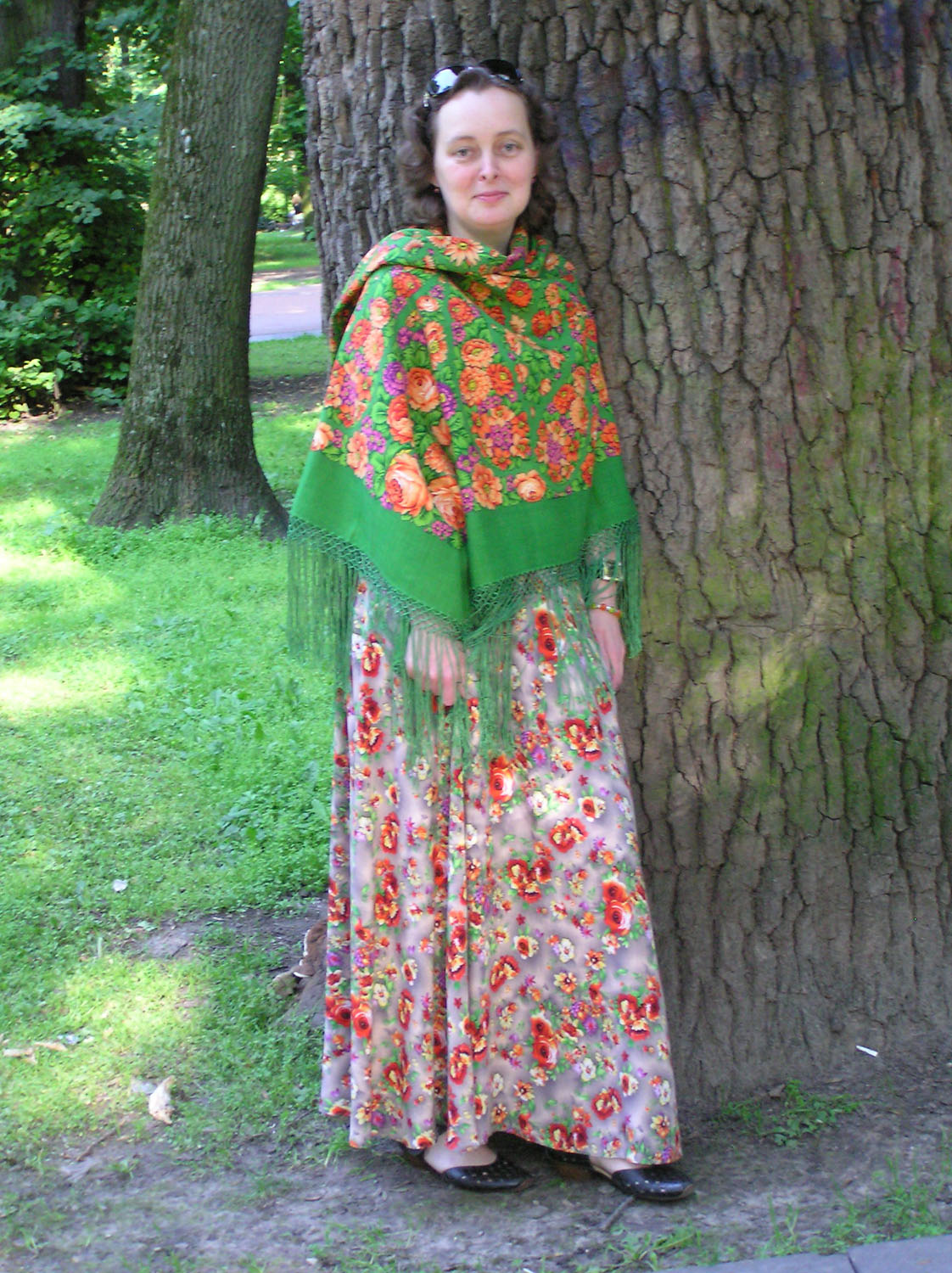 korovka У меня вот тоже сложности сочетать принты с платками, оно может и не нужно, но порой так хочется, к Вашему платью Драгоценная-0 мне на ум пришла и шелковые Морозные узоры-4, тут я с Календулой солидарна :) , а из Ваших вариантов лучше с Русским сувениром, но смущает такое обилие цветочков, а с Тайной сердца и правда, сливается очень