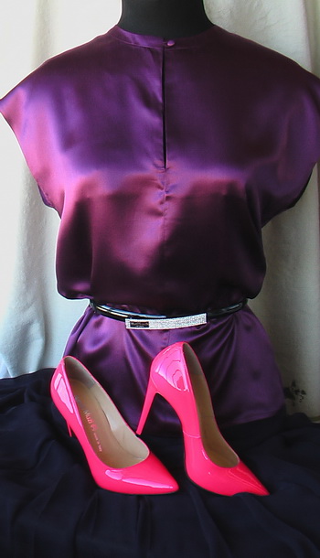 А сливовую блузу я бы ничем не прикрывала, это просто мега люкс!