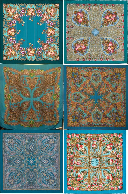 Пыталась сравнить бирюзовые платочки, и что-то мало их набралось ... размер 89 см я не учитывала