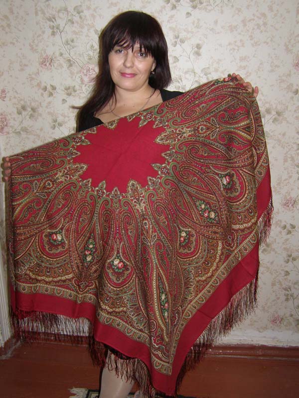 А насчет разных оттенков у платков, я тоже обратила на это внимание. У меня был платок "Отрада" с очень, очень бледными светло-лиловыми цветами. Этот подарила, купила другой, у нового рисунок был ярче, а цветы насыщенно розово-лиловые.