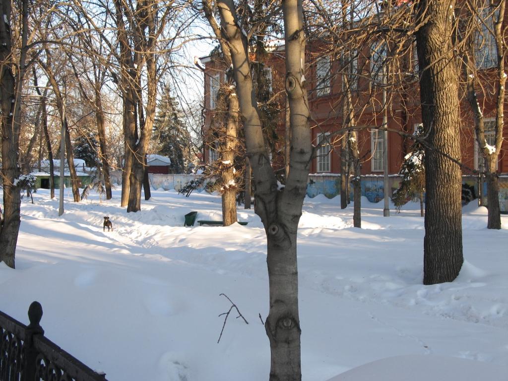 Городской сад, у нас он называется Липки, там на самом деле много лип. Правда, в последние годы на них напала какая-то болезнь, только набьют бутоны, как начинают сохнуть, и насладиться в полной мере чудным ароматом не получается. А это на работе. Понемножку снег убирают, вот сколько его с января нападало. А вокруг прямо по Пушкину: Под голубыми небесами великолепными коврами, блестя на солнце, снег лежит. Правда, речки и леса нет. Последние дни любуемся, обещают потепление с туманами, дождём, слякотью... Зато впереди - Весна!